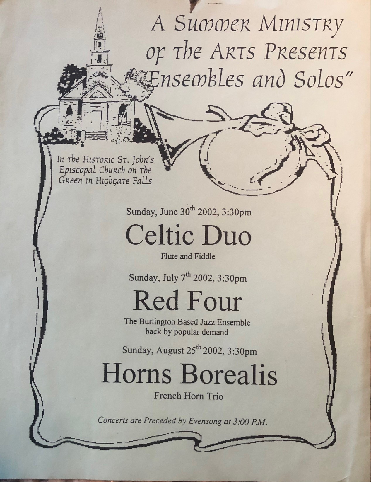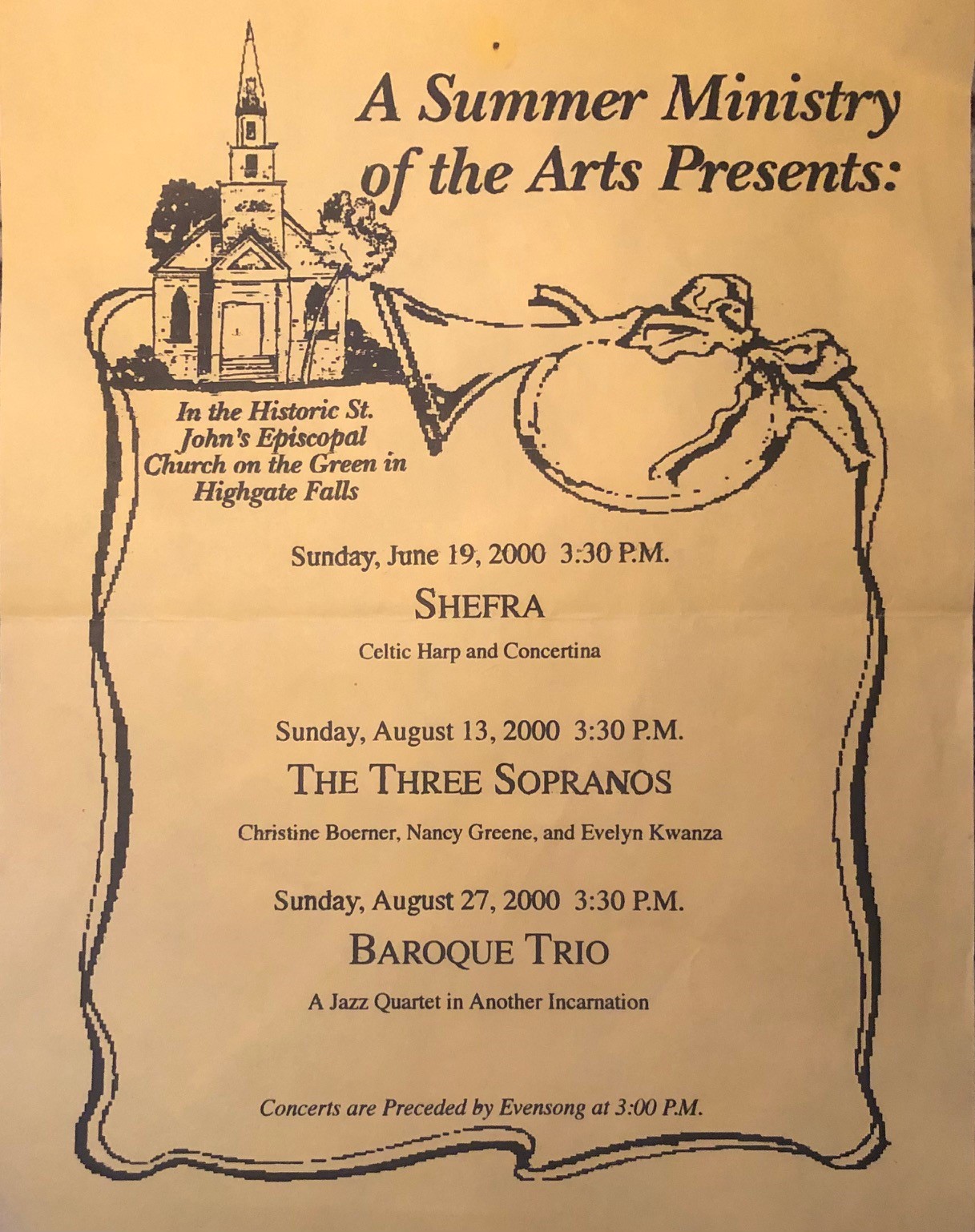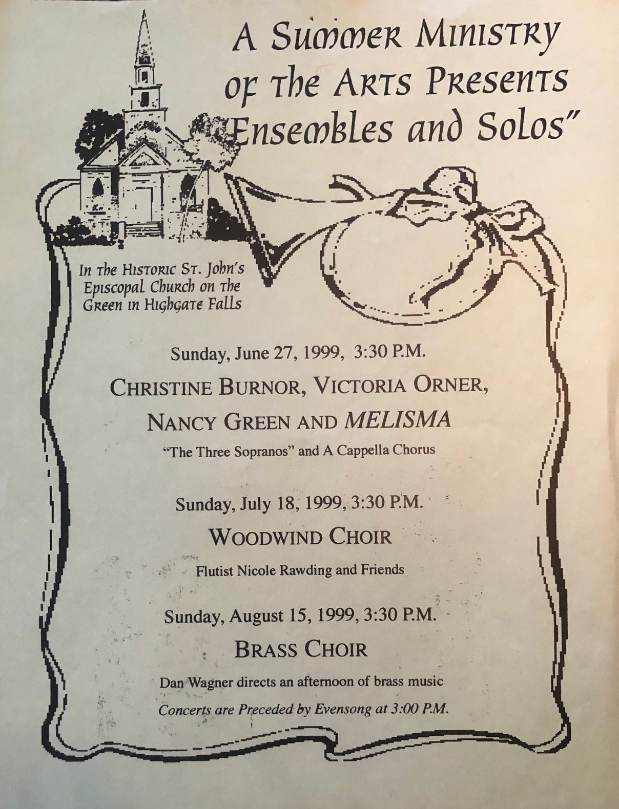 St. John's, which is under the faithful care of Holy Trinity Church in Swanton and the St. John's Commission, is a seasonal church without its own separate congregation. The Rector of Holy Trinity, Kathleen Schotto, also serves as the Vicar of St. John's. Because of its role in our history, St. John's is known as the "Mother Church" of Holy Trinity.
