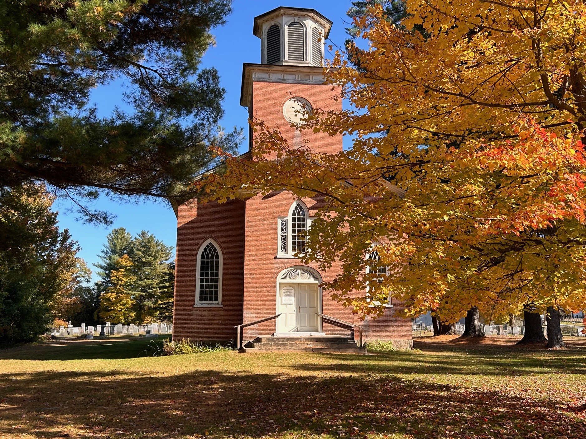 Before its use was interrupted by the pandemic and by the need for a new roof, it was our custom to hold two services annually at St. John's: one in midsummer ("Red, White and Blue Sunday" with strawberry and blueberry treats at coffee hour), and the other in the fall ("Apple Harvest Sunday" with apple delights). In 2022, a "Pre-Christmas Eve Candlelight Service" with hot mulled cider and cakes was well attended by folks from communities in the area.